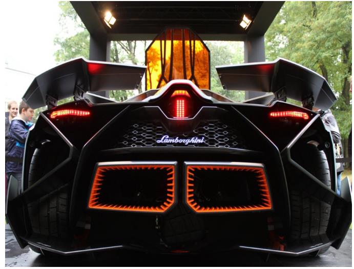 Egoista是兰博基尼公司为了庆祝品牌诞生50周年而打造,外观大量运用折现、不规则几何造型,使得车身充满了侵略性以及科技美感。