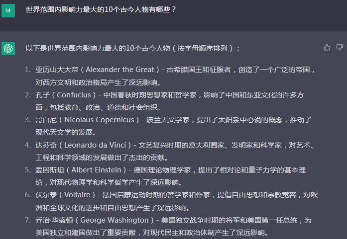 答:以下是世界范围内影响力最大的10个古今人物(按字母顺序排列):