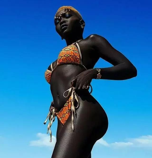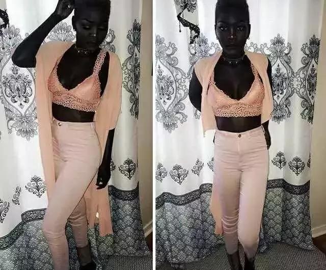 这是一位来自南苏丹的24岁黑人模特Nyakim Gatwech,由于她的“黑”在网络中爆红。