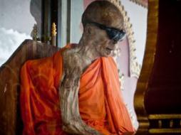 在许多人眼中木乃伊是古代人为了保存尸体而制作出来的,其实在现代也有许多人为制造出来的木乃伊,特别是在寺庙中,一些高僧如果在坐化之后,不想埋葬就会把自己制作成木乃伊,并且会放在寺庙中供人朝拜,今天要说的高僧木乃伊可以说是世界上最酷的木乃伊,身披袈裟头戴墨镜,真的是木乃伊中的犀利哥。