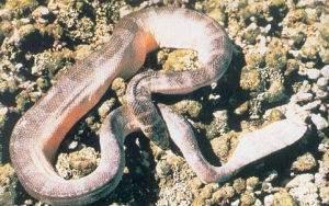 裂颏海蛇属于脊索动物门爬行纲有鳞目海蛇科裂颏海蛇属,全长100cm---140cm,分布在红海,印度洋北部,西太平洋,澳洲北部。前沟牙蛇类,毒液含神经,肌肉毒素,毒性极强,一般认为与异澳蛇不相上下,虽然异澳蛇至今还未有致命的记录被证实,但本种却发生过多次咬伤致死的事件,由于其强烈的毒液,裂颏海蛇无疑是海洋中最危险的生物之一。