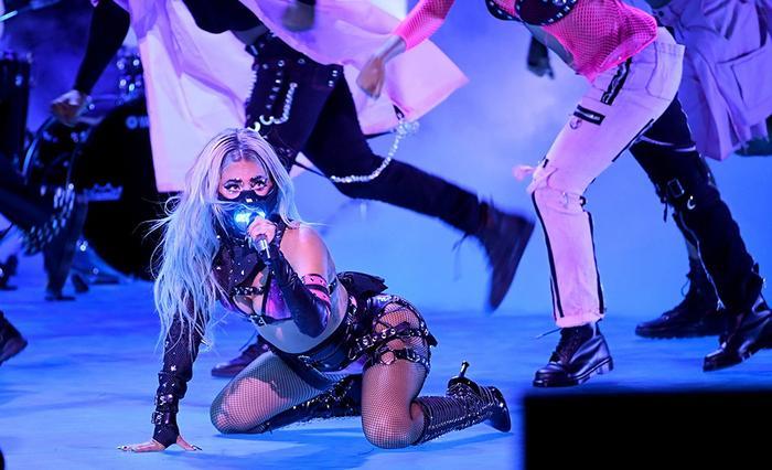 几套表演服则没有这么体积庞大,毕竟舞台服饰要尽可能方便。紧身的款式、夺人眼球的颜色、性感的pose,夸张的表达形式,很努力的表演。Lady Gaga在收视率上功不可没了。从精心打扮的造型、表演内容足以看得到Lady Gaga此番用心的程度,而且所有造型都有戴口罩,让口罩成为时尚的一部分,成为生活的一部分,把防疫进行到底。返回搜狐,查看更多