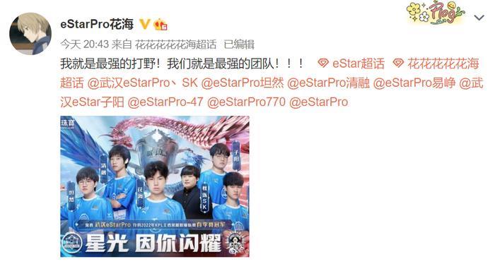 今日#eStar总冠军#后,花海解锁五冠打野成就!
