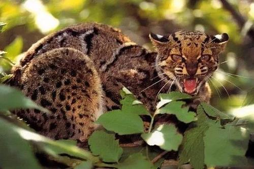 只听这个名字就可以看出豹猫的凶悍,豹猫的体型与家猫相仿,其生性凶野,主要以啮齿类、鸟类、鱼类、爬行类及小型哺乳动物为食。中国有相当丰富的豹猫资源,因此每年都出口相当数量的豹猫皮,但由于人类的捕杀,豹猫也逐渐地稀少起来,如今也早已经被列为保护动物。