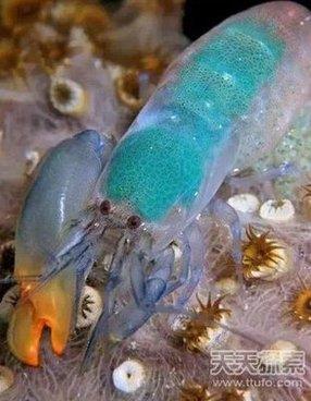 鼓虾属动物的统称。眼完全被头胸甲覆盖。第一对步足特别强大,钳状,左右不对称,雄性较雌性强大。生活时体上多具明显花纹,特别是鲜明鼓虾,体色鲜艳美丽。