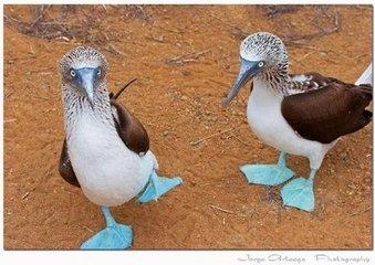 蓝脚鲣鸟有着蓝色的脚掌和硕大的眼睛,在求偶时,它们会用蓝色的脚掌来吸引异性,有时还会用独特的舞蹈来展示它们蓝色的脚趾。