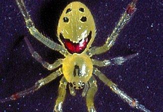 是美国夏威夷群岛上一种特有的蜘蛛。身上生有笑脸花纹。它的腹部有彩色的斑点,酷似一张人脸而得名。