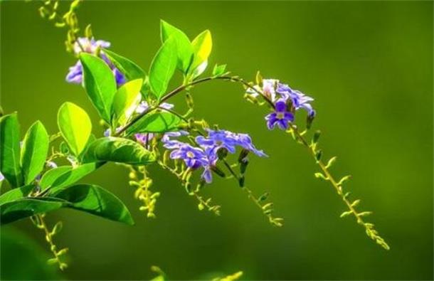 假连翘开紫色的花朵开花的时候很美,但是有剧毒。因此也有诅咒的含义是不可以送人的,不然会给别人带来霉运,花语是邪恶。