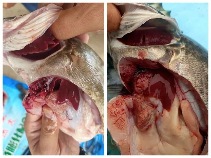 全程杰大膨化鳜鱼料养殖的鳜鱼肝脏健康红润