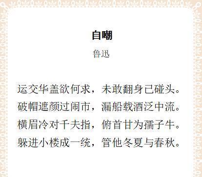 诗歌《自嘲》:鲁迅最有名的一首诗,但会背的人不多