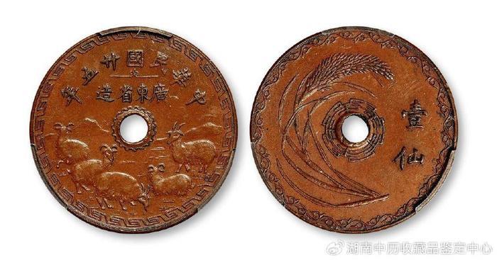 民国二十五年广东省造五羊图壹仙铜币 66.7万成交