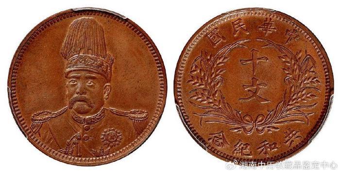 袁世凯像共和纪念大面像版十文铜币样币 356.5万成交;