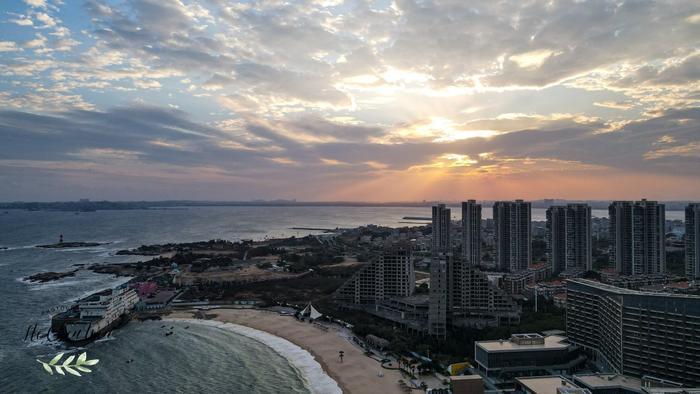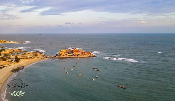 升起无人机,黄金海岸,海洋世界,洛伽寺,还有白色的细沙滩尽收眼底。
