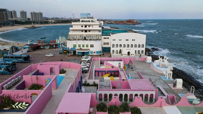 黄金海岸的西畔,还有一座游轮造型的海洋世界,海洋世界由海底世界馆、海豚表演馆、水下表演馆、潜水俱乐部四大部分组成。还有海洋宾馆,听涛酒楼、观海茶座、根艺博览馆、奇石博览馆、购物中心、高空旋转飞机等等。