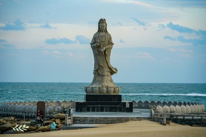 洛伽寺位于黄金海岸的东畔的宫屿岛,潮来时波涛汹涌,如叩拜观音,潮落礁石嶙峋,似拱殿 菩萨 。水涨水落,岛撼寺动,日升月降,流光绚彩,非常的震撼。