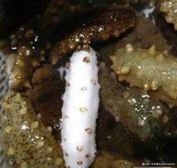 不过因为都是捕海参,渔民比对了一下,心想这只白色的怪虫该不会是白化症的海参吧?