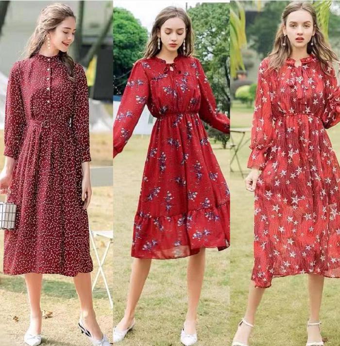 下面这种红色裙装搭配白色尖头鞋,呈现的风格就很简约,基础色和亮色系的结合具有层次感,而且印花连衣裙的搭配特别的浪漫和清新,夏季搭配完全没问题。