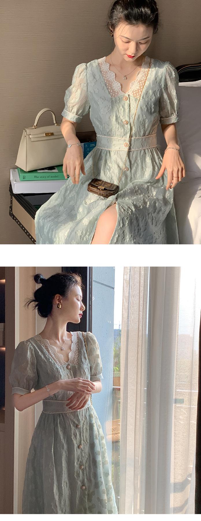 夏季穿搭连衣裙非常的清爽,选择法式V领蕾丝花边初恋提花收腰连衣裙就很不错,奔三奔四的女性也能穿出不一样的女人味,漂亮大气,美出新高度。扎着一款丸子头更加的减龄,美如18岁少女,气质全开,这样泡泡袖设计的连衣裙显得温柔优雅。