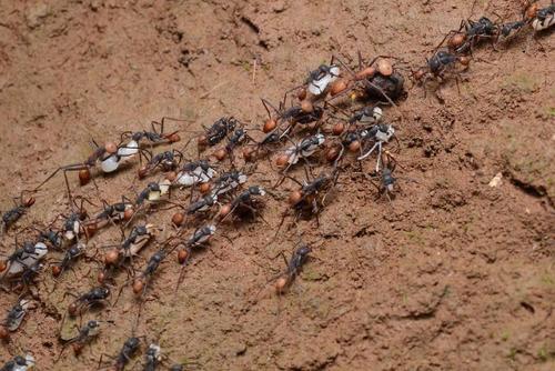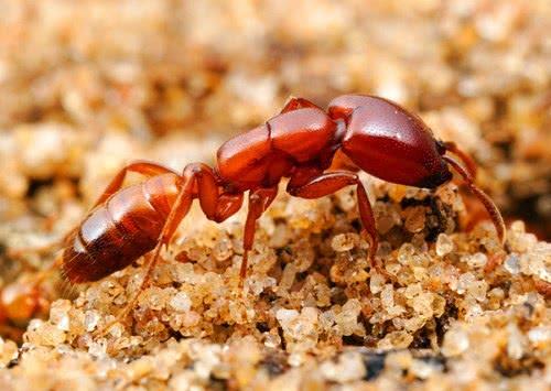 行军蚁又称为“军团蚁”,雄蚁一般长2.5厘米,身体呈褐黄色。沙漠行军蚁生活在亚马逊河流域,经常几百万只地进行集体生活,并且它们有着超强的配合能力。其实,沙漠行军蚁确实拥有着强大的破坏力,毕竟那么多蚂蚁一起行动肯定会对一些植被造成破坏,另外,沙漠行军蚁的唾液中也有着毒性,当沙漠行军蚁遇到猎物之后,它们庞大的数量加在一起会释放出很强的毒性,不过因为它们是几百万只地集体活动,所以它们必须配合着彼此,而要达到这样子配合,它们也会相应地受到一些限制,那就是移动速度变得缓慢,因此,在面对一些有着敏捷的速度的动物时,沙漠行军蚁并不能对这些动物造成致命性的伤害。