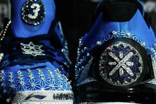 据说这款鞋是在迈阿密球星维恩·韦德的战靴上得来的灵感,以李宁之前推出的“韦德之道”系列为基础,在图案的部分分别采用了优质的蓝宝石和白钻进行镶嵌,同时这双鞋的诞生也是为了庆祝中国新年的到来,所以最终将其命名为“韦德之道4猴年”,并且在纽约的慈善拍卖会上进行了展出和拍卖,最终的收入将全部捐给一家慈善机构救助贫困人群。