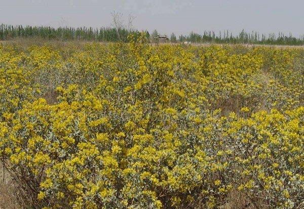 沙冬青,又称蒙古黄花木、冬青、蒙古沙冬青。常绿灌木,高达2m,冠幅约3m。分布于内蒙古、宁夏和甘肃等地海拔1000至1200米低山地带。为常绿超旱生植物。喜沙砾质土壤,种子吸水力强,发芽迅速。花开4、5月,7月果熟。荒漠地区十分珍贵的孑遗种,被列为国家二级保护植物。沙冬青能在恶劣的自然环境中生长,具有较厚的角质层、密实的表皮毛,气孔下陷,抗旱性、抗热性强,耐寒、耐盐、耐贫瘠,保水性强,是在极度缺水的状况下仍能正常生长的耐旱植物。