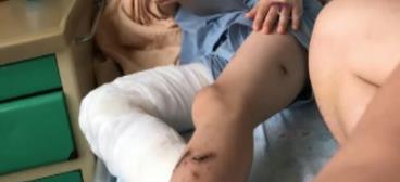 事发后第二天豆豆腿部受伤情况