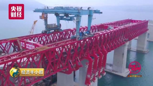 工地上的塔吊、挂篮、还有国内首台双孔造桥机,都是为了这座大桥量身定做,强大的中国制造正助力着建造者们去赢得这场与时间的赛跑。