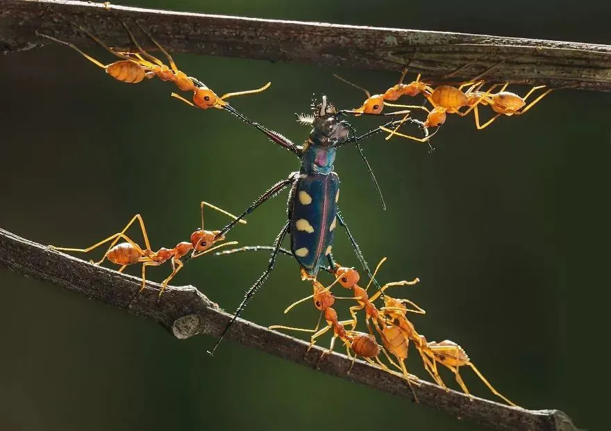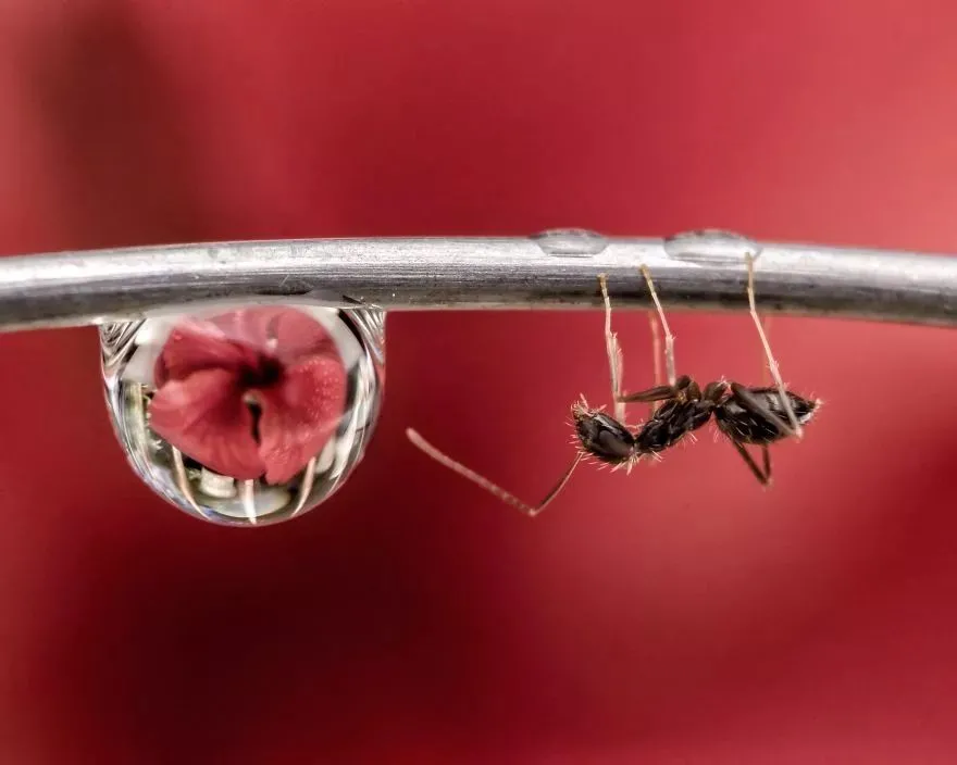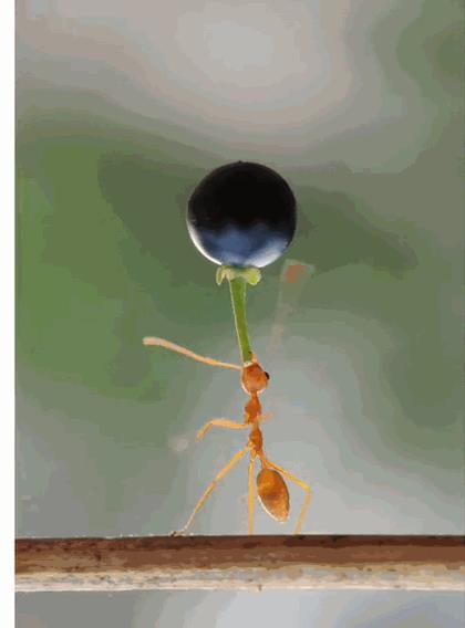 在库马尔发布的众多照片中,有一张蚂蚁举重的照片,十分令人印象深刻: