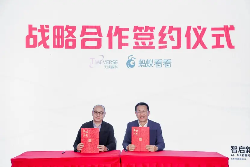 1月18日,在天娱数科旗下智境云创品牌升级战略发布会上,天娱数科与蚂蚁看看举行了战略合作签约仪式。