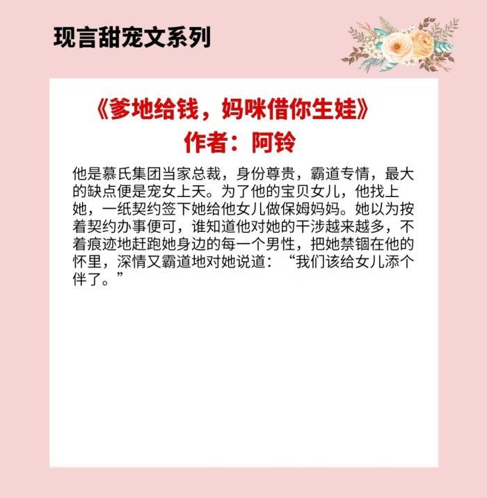 四、《爹地给钱,妈咪借你生娃》 作者:阿铃