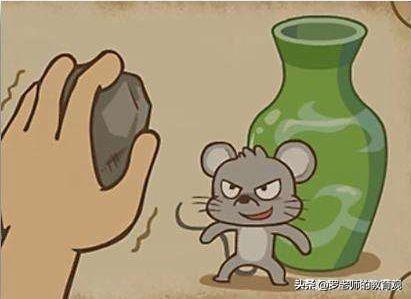 一个人的手上握着一块石头,准备砸向对面的老鼠,老鼠的后面有一个绿色的花瓶,猜一猜这是什么成语。有人说这是以卵击石,也有人提出了质疑,如果是以卵击石的话,为什么中间会有一只老鼠呢?大家知道答案吗?