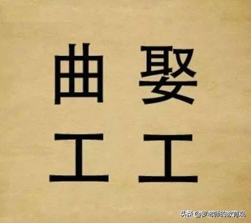 这张图里由四个字组成,曲、娶、工,工,而且这四个字左右对称,曲字和娶字发音相同,但是字形不同,而工字一模一样,答案已经很明显了,很多人都能够脱口而出这个成语,你想到了吗?