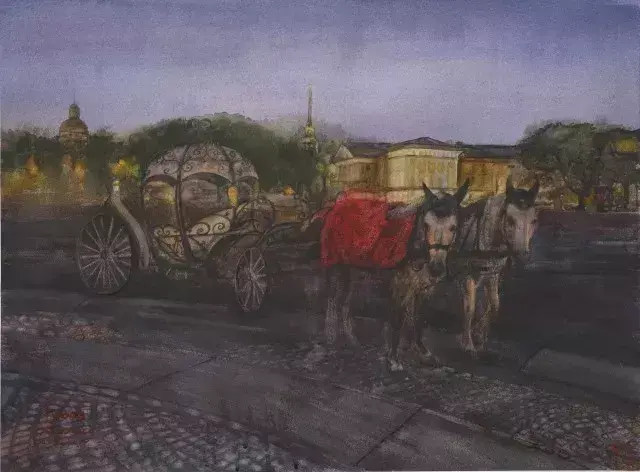 《冬宫之夜》纸本水彩 73x53cm 2016年