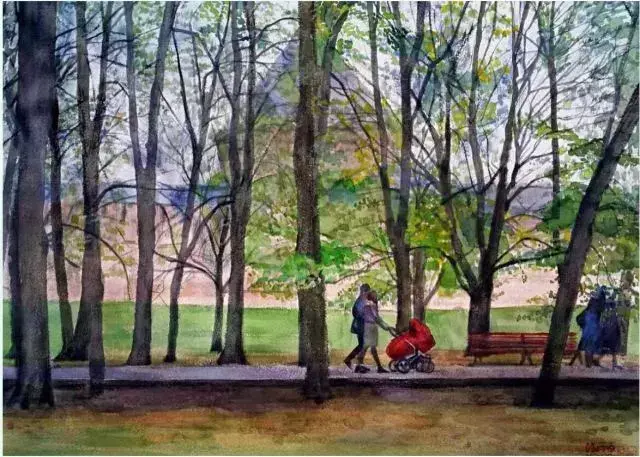 2017年水彩《金秋的圣彼得堡》水彩俄罗斯——中央美院油画与西方传统绘画高研班考察写生展;(北京)