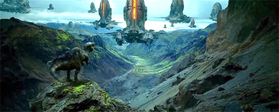 骑士飞船主体停靠的时候,周边的弧形小飞船会竖立起来,远远看上去整体的造型像一个巨大的手掌飘在空中。