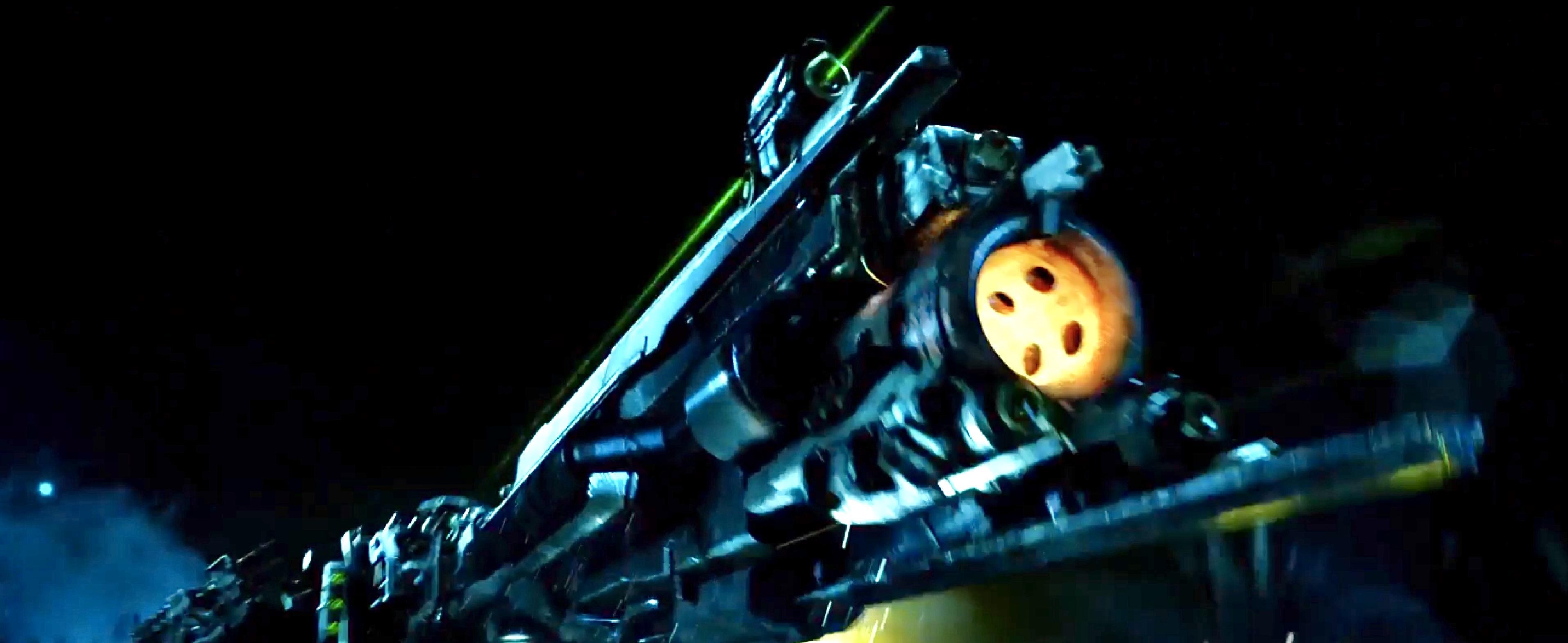 第3个层次是直接伸出完整的脸炮进行火力打击在脸炮变长的过程中,三点定位的绿色激光发挥最后的作用,应该是完成了最后针对目标的精准定位,直接锁定某个点。