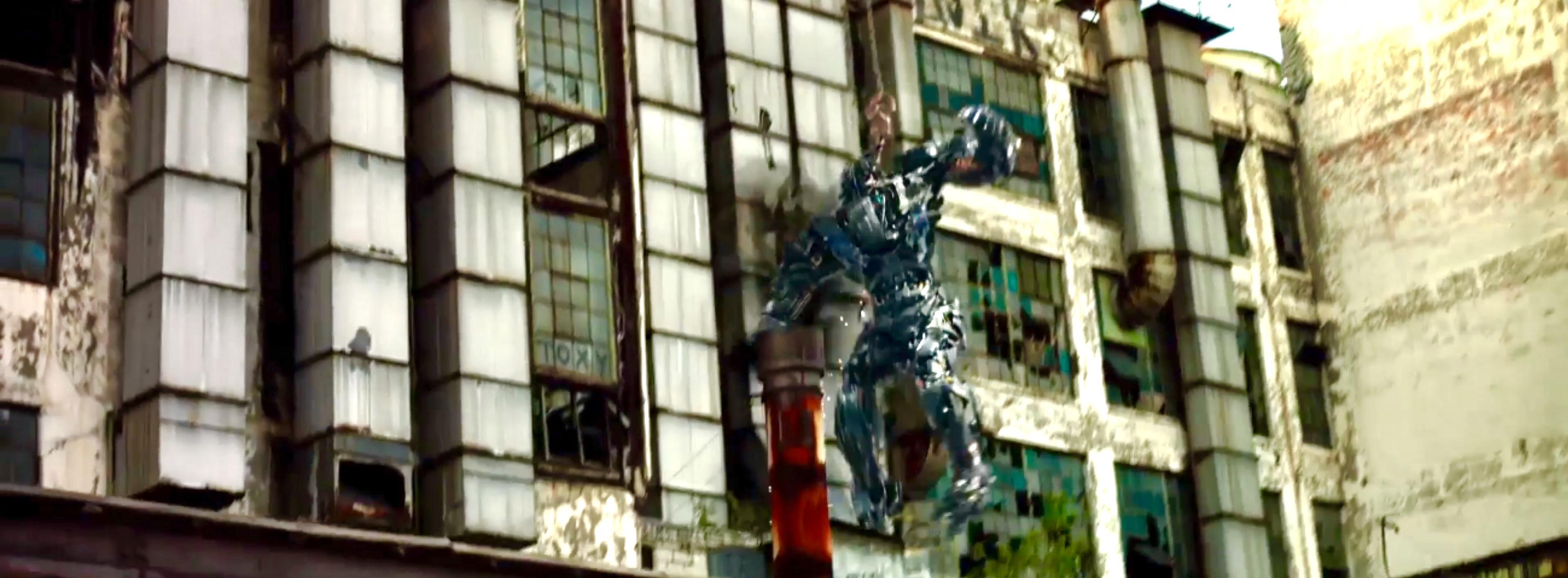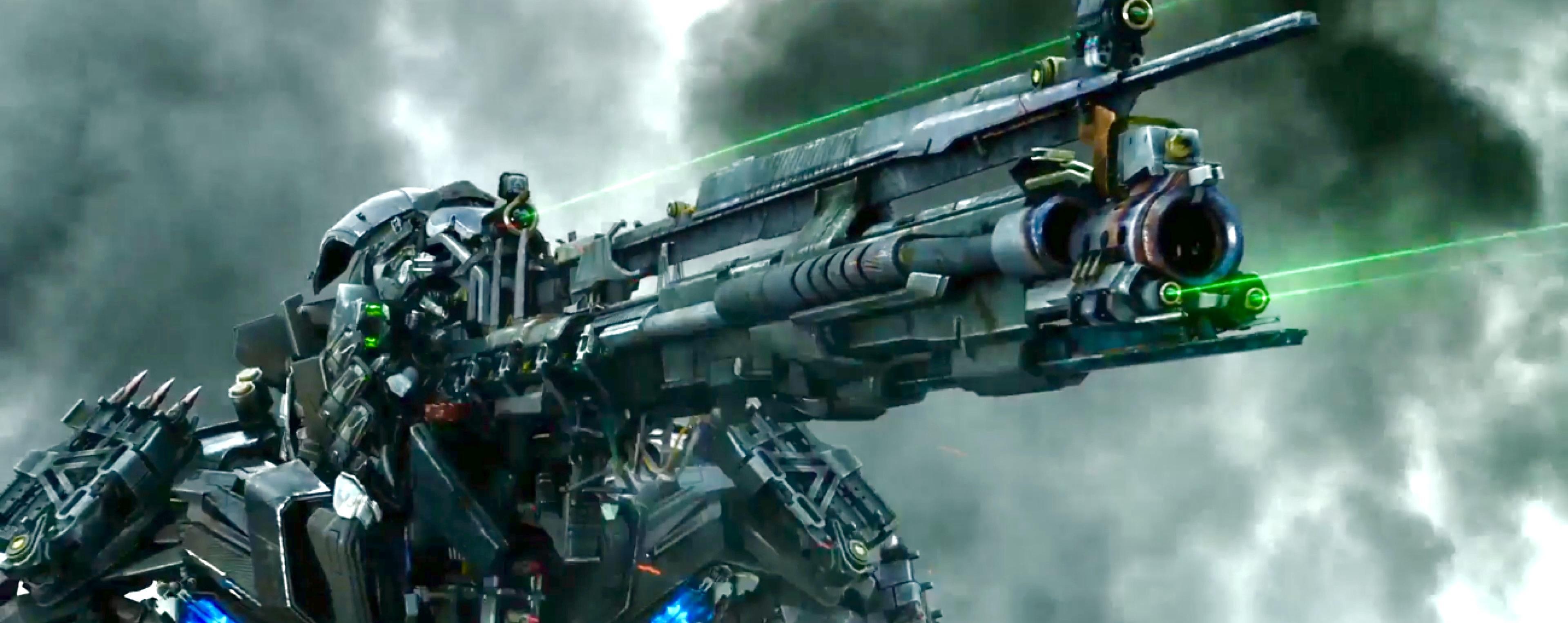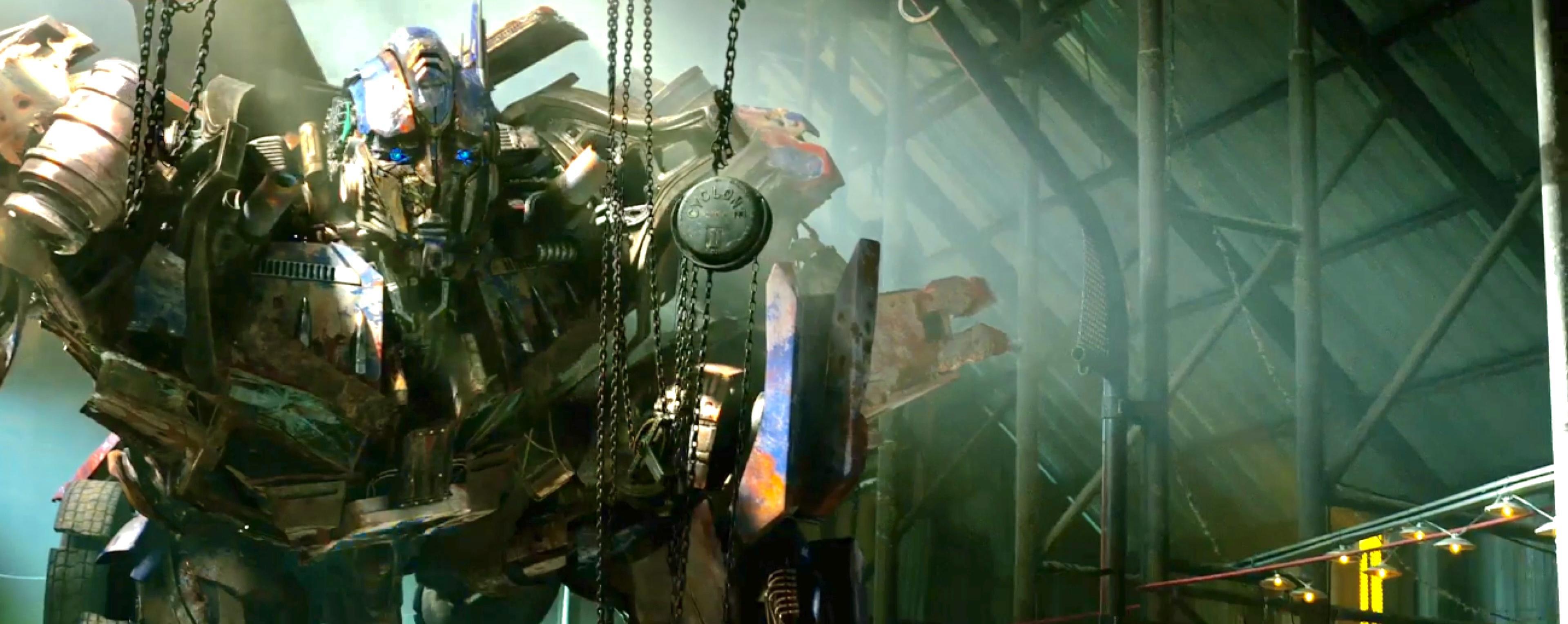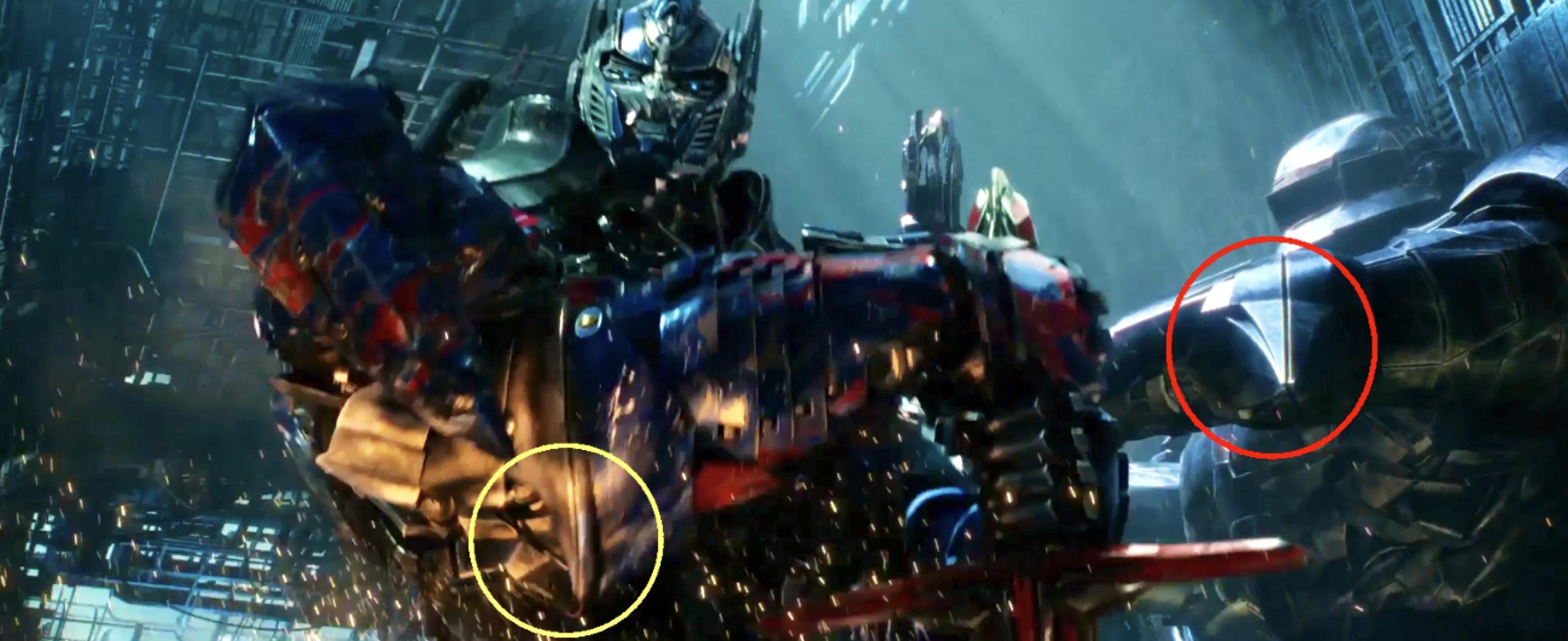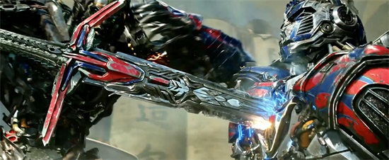 擎天柱最经典的标志武器是炽热的发光能量剑,《变形金刚》1234都有出现。到《变形金刚4》大战惊破天,能量剑被惊破天前方的涡轮销毁折断,起初我还没有看清楚,并不知道被磨成了粉末。