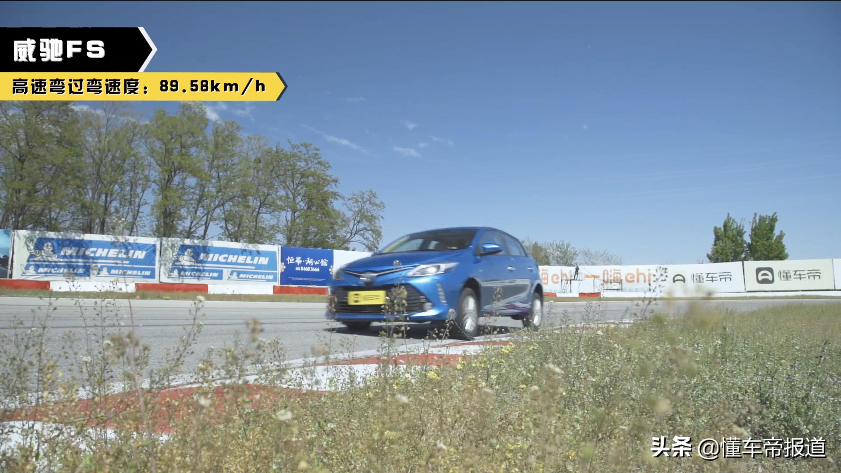 来到懂车帝高速弯,威驰FS以89.58公里/小时的速度过弯,过弯速度基本持平,最终,威驰FS以131.67公里/小时的速度冲过龙门,致享以131.68公里/小时的速度冲过龙门。完成了它们的赛道考验。