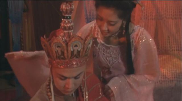 师徒四人初到西梁女国城门前,唐僧告诫徒弟们:到了西凉女国,你们要小心,不要大放情怀,坏了我佛门清规。可是他没有想到,这个情劫是佛祖设给自己的。唐僧第一次参见女王,女王眼睛直直的全身上下打量着他,唐僧连着喊了三遍女王陛下,女王都没有反应过来,朱琳也把情和痴迷演的很好,随便截一幅图都可以看出眼中有情,心中有爱。后面接过了他的通关文牒,看起了他的详细个人信息,知道他是唐王御弟,自己是国王,双方门当户对,千载难逢的机缘,愿以一国之富,招唐僧为王,于是就把文牒扣下了。唐僧见女王迟迟不给他文牒,不由得看向女王,心中在想十万个为什么,此时的唐僧看不出对国王有情。