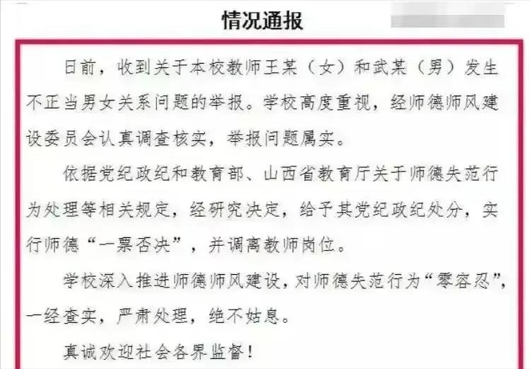 在收到举报后,学校的相关领导立即采取行动展开了调查,并随后发布了情况通报。经过学校调查确认,举报问题属实,对相关人员进行了党纪和政纪的处分,并实行师德一票否决制度,将其调离教师岗位。