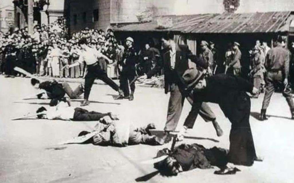 为了达到震慑的目的,他们将林祥谦带到,人来人往的街头,紧紧地绑在电线杆上。指挥放子手,手举着大刀,向林祥谦砍去,只为逼他屈服。