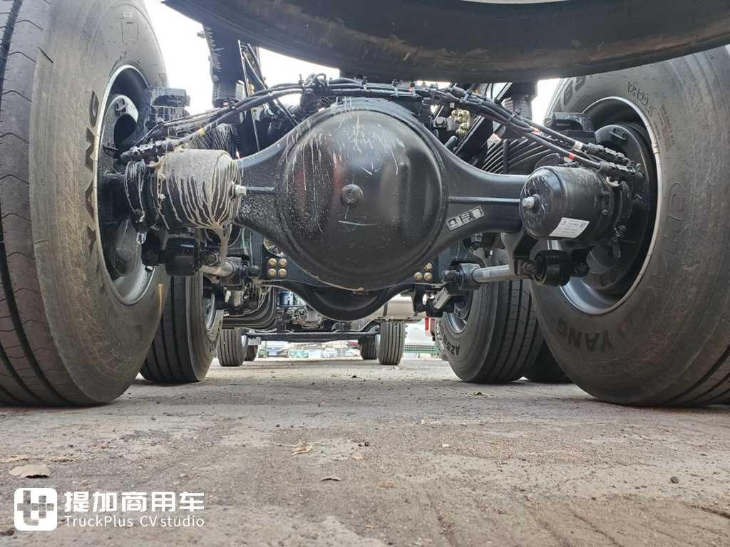 与超速挡变速箱搭配的是3.64速比的德纳单级减速桥,这种搭配形式在国道和高速行驶都有较好的适应性,如果用户专门追求高速高效快运的话,东风商用车还可以提供DT14直接挡变速箱+2.87速比后桥的动力链组合。