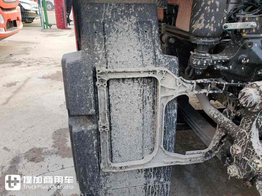 大梁上安装有两个铝合金材质的油箱,油箱的容量规格是600L+400L,共计1000升的总容量,这对于全国跑的卡友来说是非常友好的一个配置,不仅能增加车辆的续航能力,而且在便宜的时候把油加满,一趟下来还避免了不同地区油的差价。