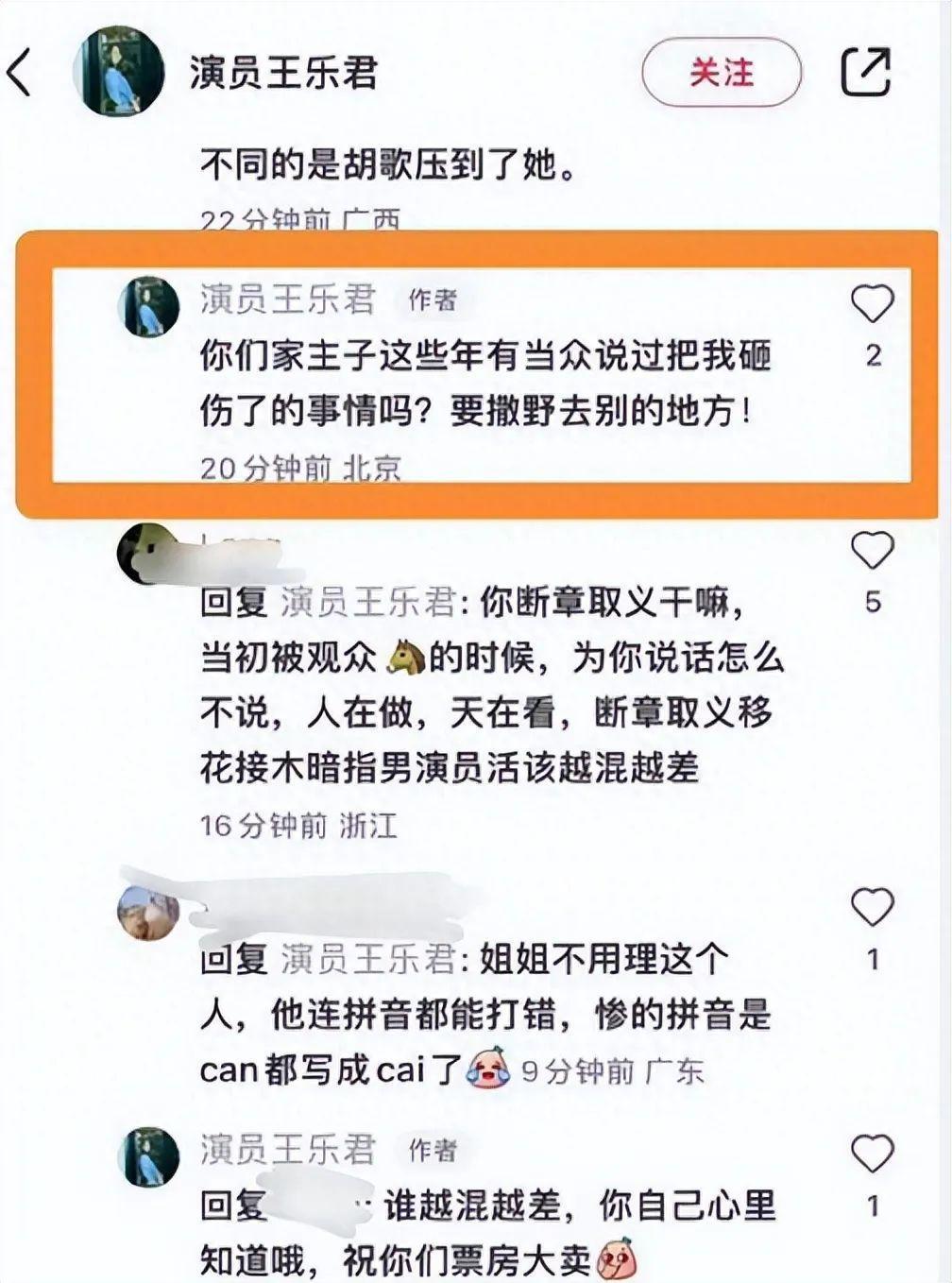 也有粉丝斥责王乐君“炒作”,甚至不少粉丝重提当年《伪装者》全员走红唯独“程锦云”因表现不佳遭遇观众恶评等前史,双方在留言中发生争吵。