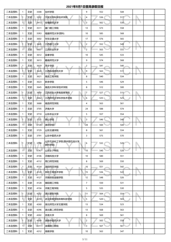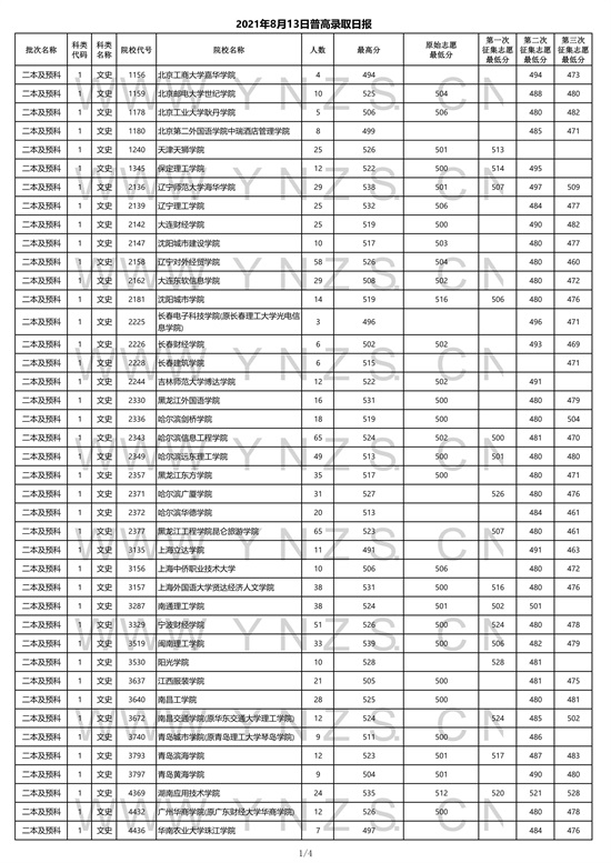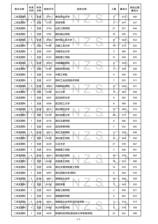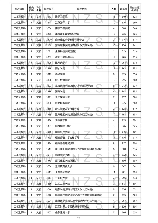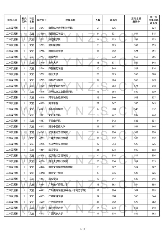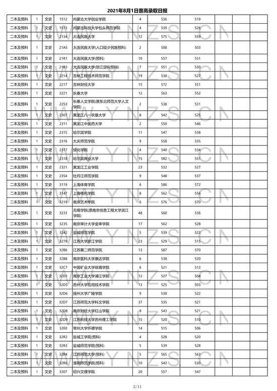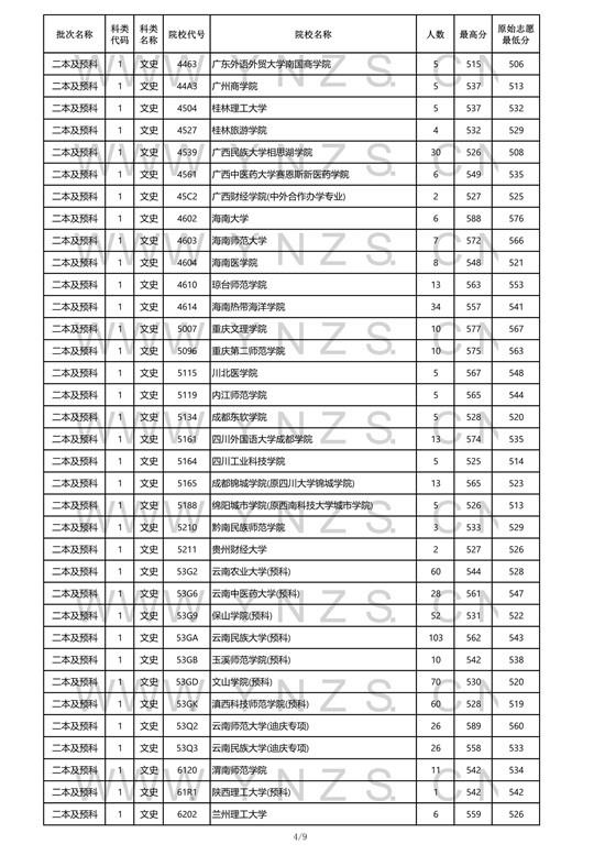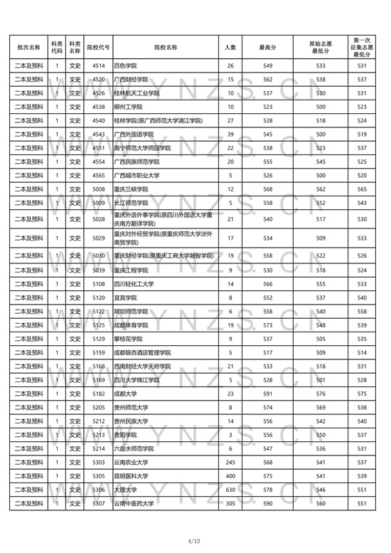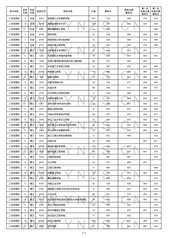 2021年云南省文史类二本招生院校录取分数线
