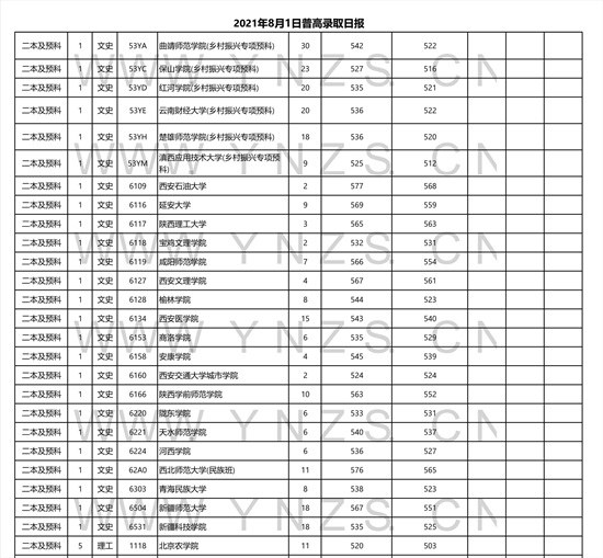 2022高考:2021年云南省二本和二本预科录取分数线