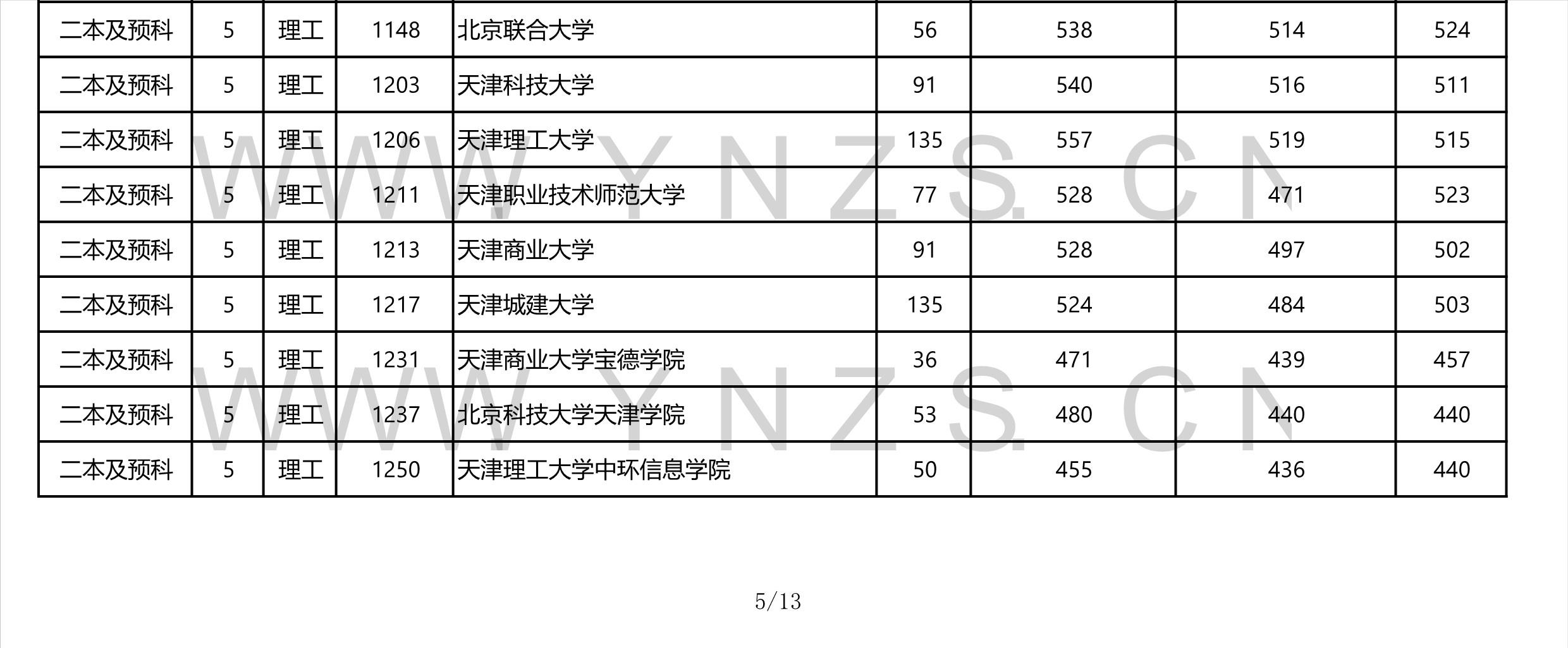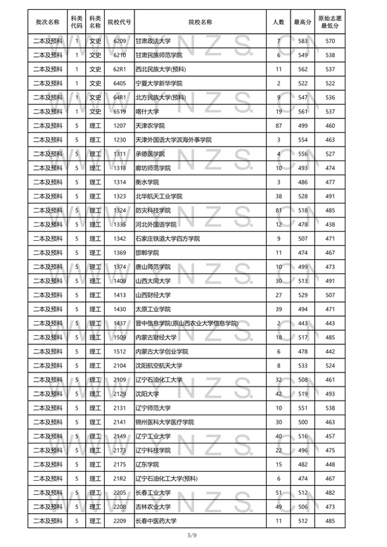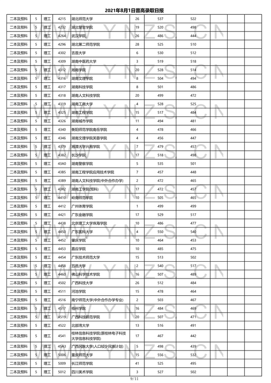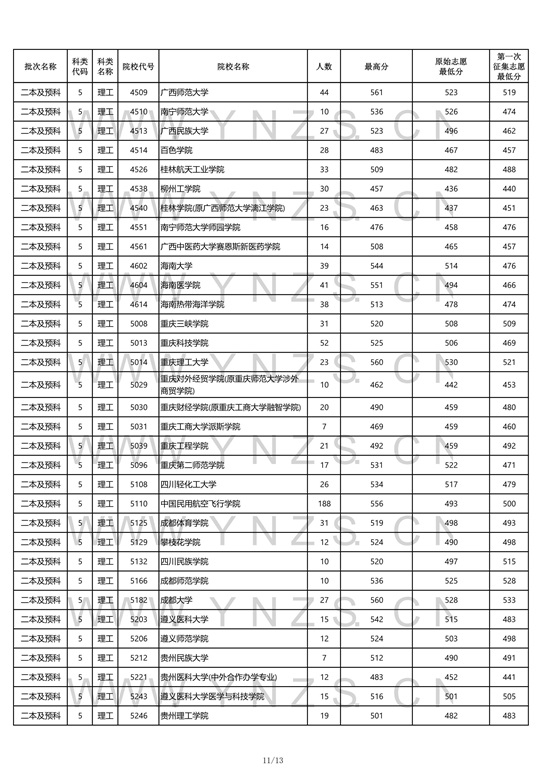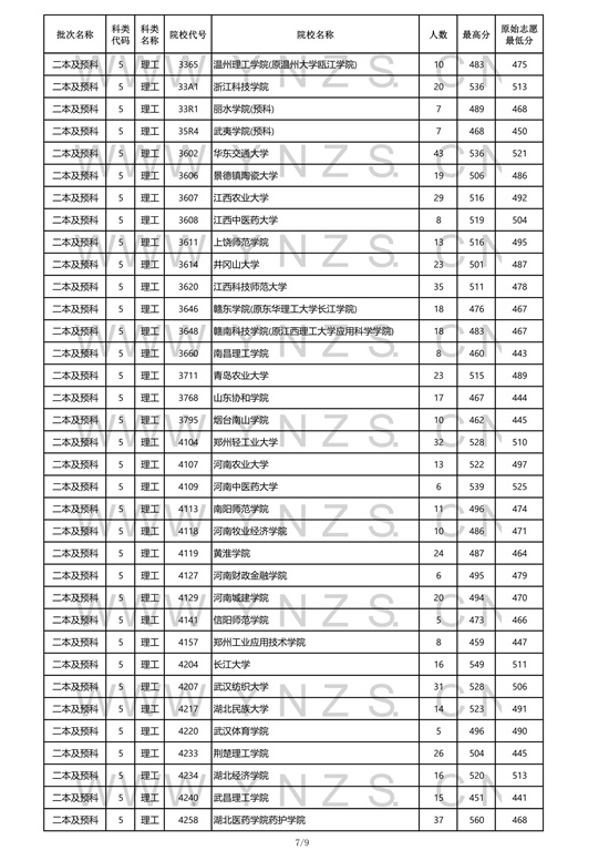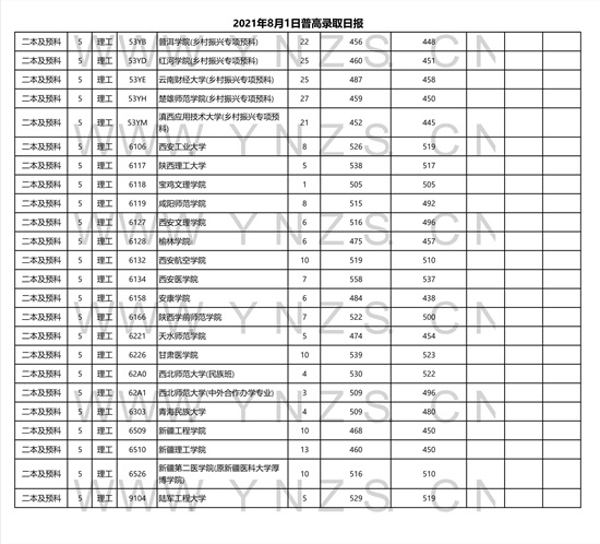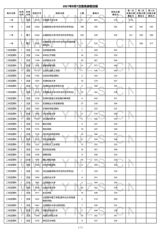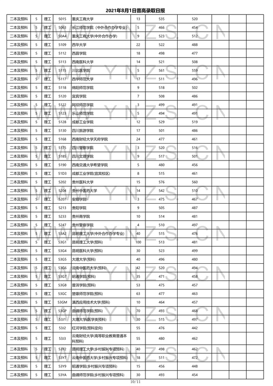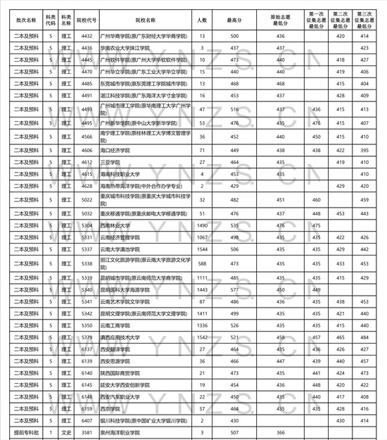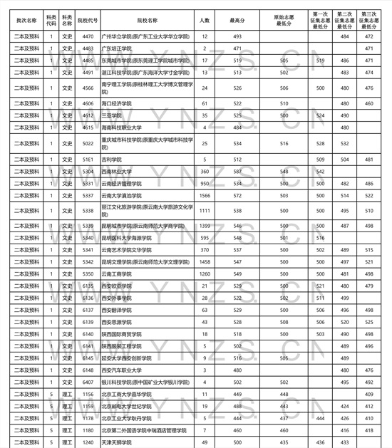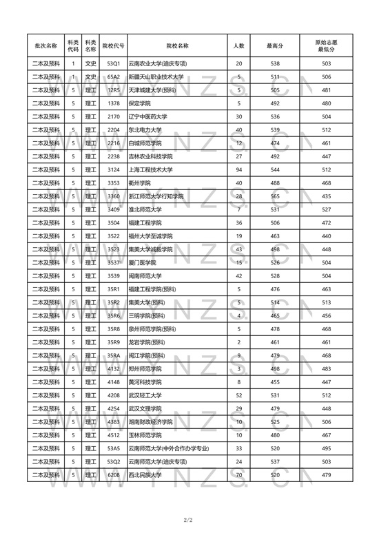 2021年云南省理工类二本招生院校录取分数线