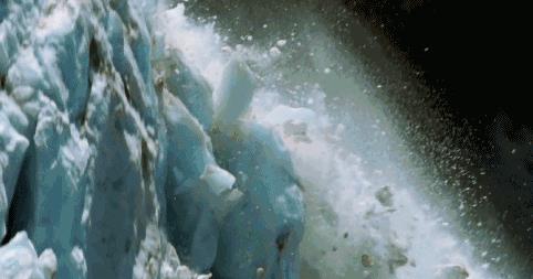 “冰崩”指的是冰川上的冰突然崩落,声势犹如山崩地裂,溅起的水花能达到数百米高,碎冰犹如炸弹四射,威力惊人。1989年1月14日,特大“冰崩”突然出现在科考船前方,一场“冰雪瀑布”瞬间来袭,就在即将撞到“极地号”时,幸运地离科考船仅仅3、4米的地方停住了。