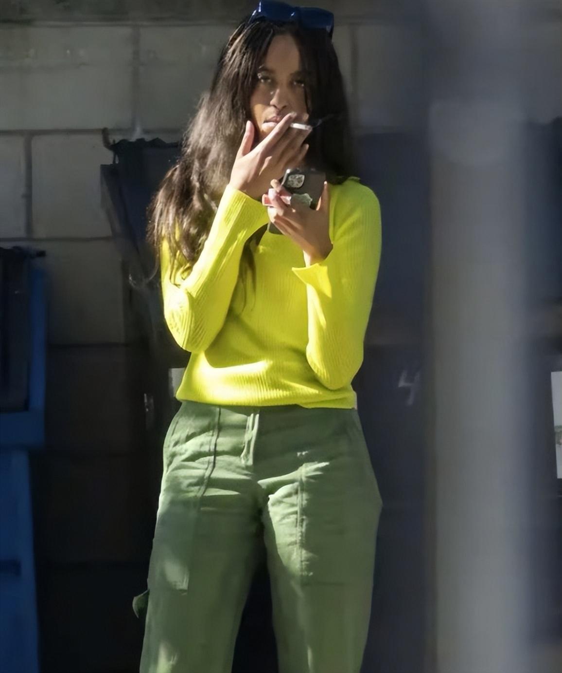 而这酒红色的吊带真空上阵,还配了一头带有红色系的脏脏辫,怎么看都有抄袭自己妹妹萨莎的嫌疑,真的不适合她。