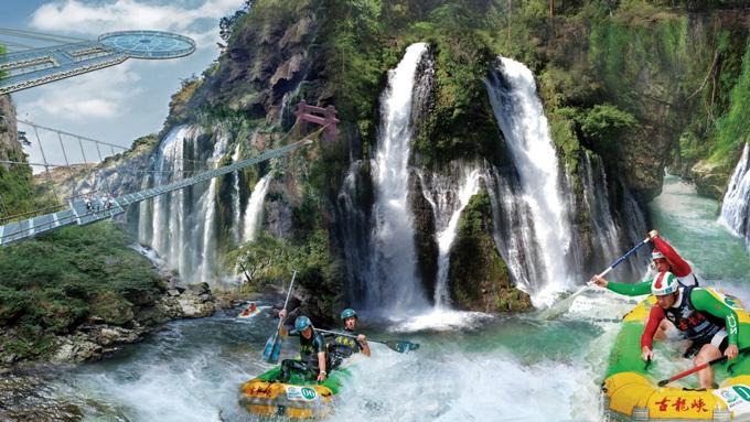 依托大峡谷、大森林、大瀑布的独特地形地貌,古龙峡景区斥资数亿元打造了玻璃大峡谷、峡谷漂流、万丈悬瀑、丛林飞跃四大王牌产品。从水上飞驰,到陆地探险、空中揽瀑,古龙峡一日玩遍水陆空。